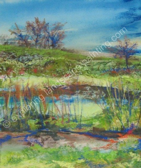 Horizon 2Unusual colours and the clever use of mixed media helps to create this peaceful and unusual painting.