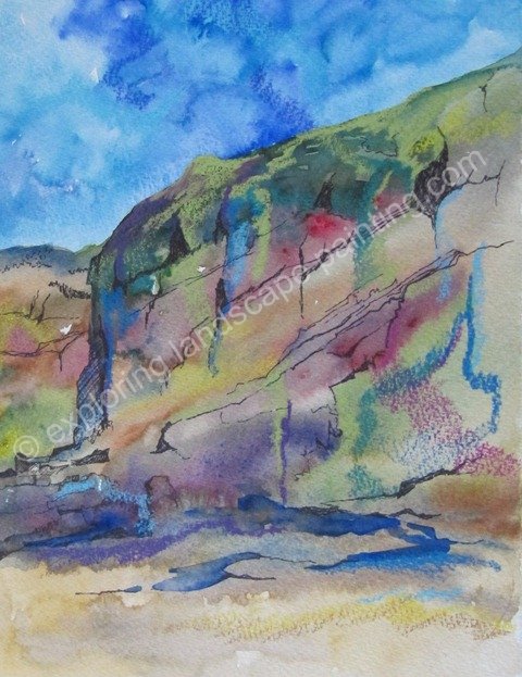 CliffsA striking mixed media painting exploring the contrast of cliff and foliage.